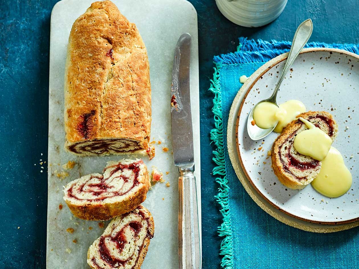 - A steamed or baked pudding made from suet pastry and jam, formed into a roll,